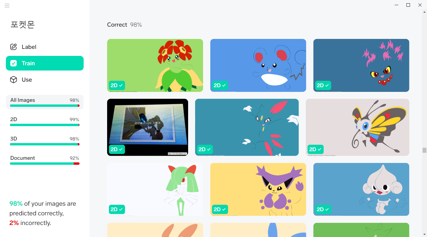 이미지를 분류 한 후 Lobe 프로그램 내에서 직접 이미지를 분류해 주는 기능을 제공해 주지는 않았다.