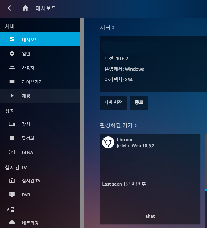 그 후로 FTP 서버를 깔아서 안드로이드용 FTP 플레이어도 설치해보고 여러가지 서버 프로그램 등도 설치해서 비교해보았는데 그중에 가장 괜찮은게 Jellyfin 미디어 서버였다.